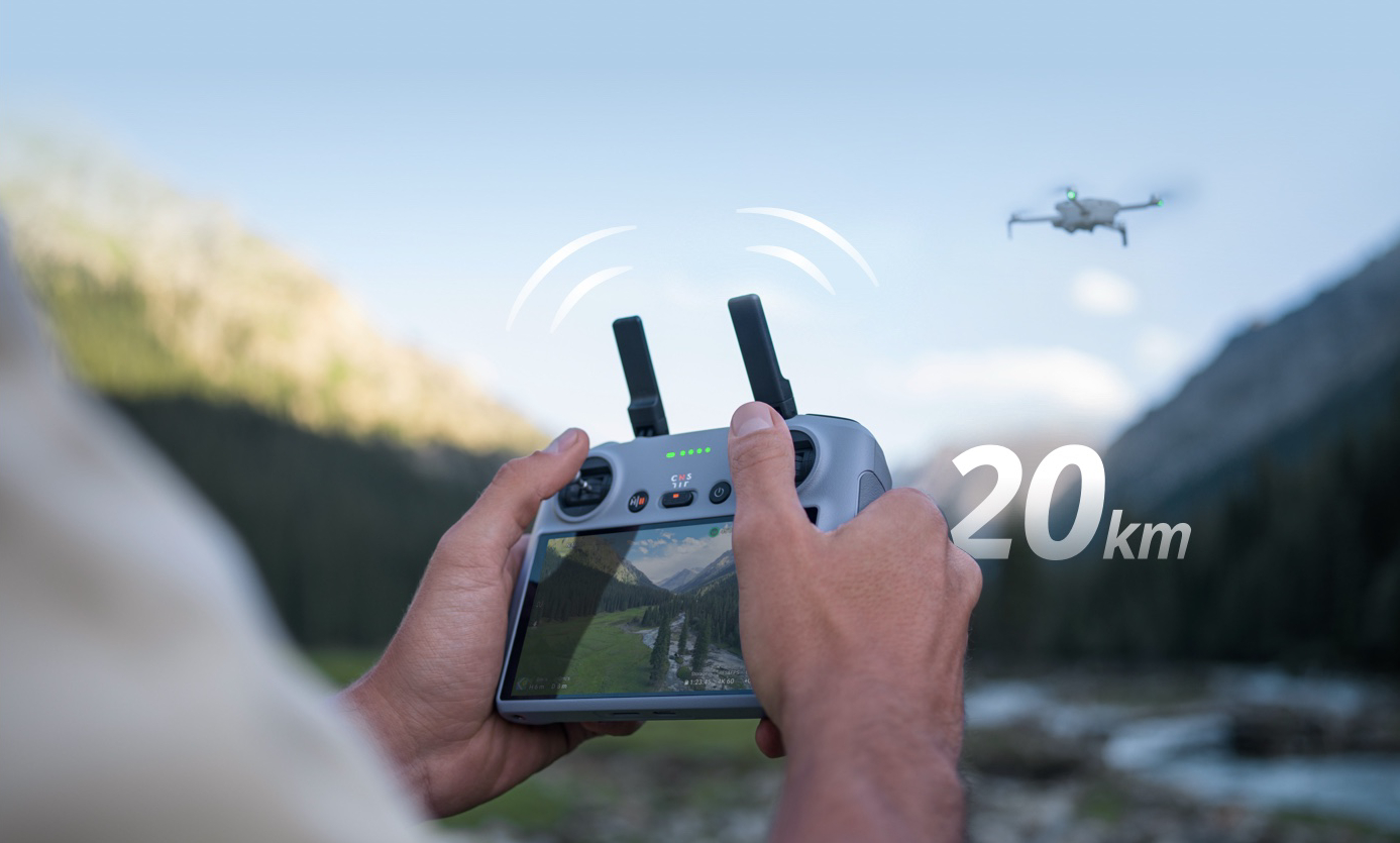 Дрон оснащен функцией передачи видео DJI O4. Наслаждайтесь плавными прямыми трансляциями с разрешением 1080p и частотой 60 кадров в секунду на расстоянии до 20 км.